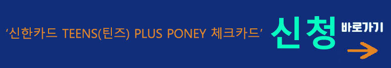 🔻🔻아래 링크를 통해서 ‘신한카드 TEENS(틴즈) PLUS PONEY 체크카드’ 신청이 가능합니다.🔻🔻